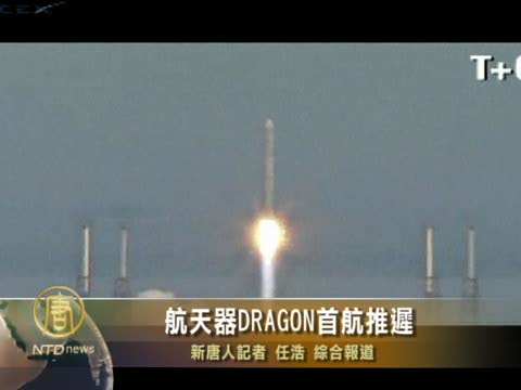 【新唐人2010年12月8日訊】美國民間太空探索科技公司SpaceX宣佈,將由獵鷹9號(Falcon 9)火箭發射升空的航天器“龍”(Dragon),因為工程師正在檢查獵鷹9號的噴嘴可能出現的裂縫,首航的時間最早可能會在週四,也可能會延期到週末。