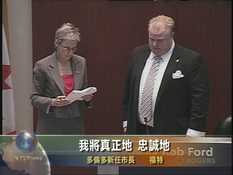 【新唐人2010年12月8日訊】多倫多的新市長 福特今天下午正式宣誓就職。他承諾要為市府帶來變化,而且要把納稅人放在最重要的位置。