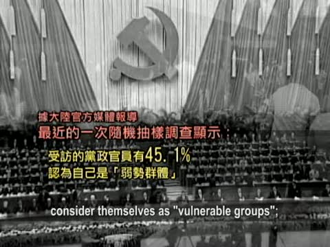 【新唐人2010年12月8日訊】「弱勢群體」一般被認為是貧困者、農民工、或非正規就業者,以及在勞動關係中處於弱勢的人。不過,最近大陸一項問卷調查顯示,近五成中共黨政官員認為自己是「弱勢群體」,這種心態造成了“做一天和尚撞一天鐘”的消極怠工影響,令一般老百姓哭笑不得。