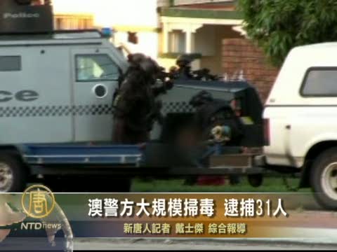 【新唐人2010年12月8日訊】澳大利亞警方星期三(十二月8日)表示,在澳大利亞史上最大規模的一次掃毒行動中,警方逮捕了31人,其中包括一名前奧運金牌得主。