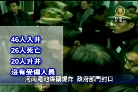 【新唐人亞太台2010年12月9日訊】中國河南省三門峽市澠池縣,星期二下午發生煤礦瓦斯爆炸,事故發生後現場救援指揮部三次更改入井和死亡的人數,本台記者8號向多個有關政府部門查詢礦難發生的原因及救援情況,對方均以不清楚或不便透露回應。