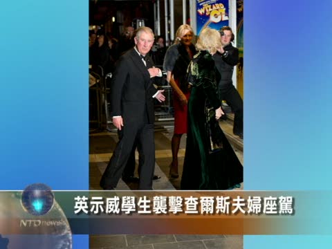 【新唐人2010年12月10日訊】英國王室克萊倫斯宮(Clarence House)星期四(12月9日)表示,王儲查爾斯親王(Prince Charles)和他妻子卡米拉乘坐的小汽車在前往倫敦市中心的劇院時,遭到參加學生抗議活動的示威群眾攻擊,王儲座駕車身被潑上白油,玻璃窗被打破。王室辦公室證實,查爾斯與妻子卡蜜拉(Camilla)都安然無恙。