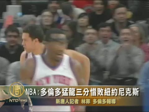 【新唐人2010年12月10日訊】NBA常規賽昨晚繼續進行11場比賽。其中多倫多猛龍隊以3分之差,惜敗給了紐約尼克斯隊,遭遇3連敗.