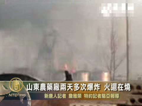 【新唐人2010年12月10日訊】山東陽谷中石藥業有限公司廠區內9號上午,再次發生爆燃,巨大的火球裹著濃煙從廠區上空騰空而起,火苗竄起 15米高。這是兩天來發生的第二次爆炸,引發的火勢比前一天還要大,大量黑煙往陽谷縣城方向蔓延開去。目前傷亡人數都還得不到確認,據說政府已封鎖了信息。