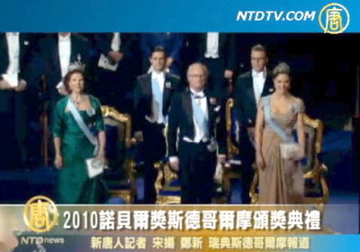 【新唐人2010年12月11日訊】12月10日瑞典當地時間下午4點半,2010年諾貝爾物理獎、化學獎、醫學獎、文學獎和經濟學獎五個獎項的頒獎儀式在瑞典首都的斯德哥爾摩音樂廳舉行。瑞典國王卡爾十六世•古斯塔夫向獲獎者頒發了諾貝爾獎證書、金質獎章和獎金。讓我們一起來看看今年頒獎的盛況和得獎人的感受。