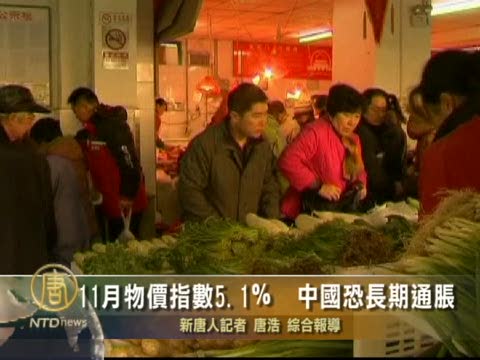【新唐人2010年12月11日訊】中共當局在星期六(12月11日)公布了中國11月的消費者物價指數(CPI),漲幅高達5.1%,創下28個月來的新高。中國人民銀行也宣佈,從12月20日起,將存款準備金率上調0.5個百分點,這也是今年的第6次上調,顯示中國內部已經面臨長期的通脹壓力。