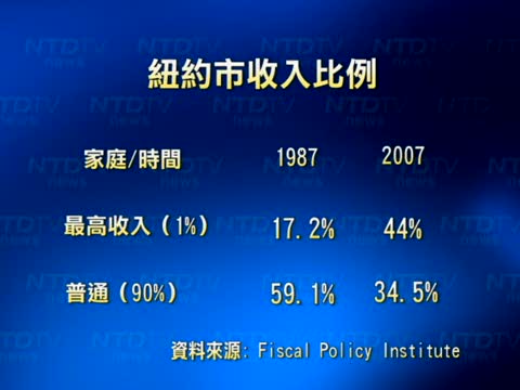根據財政政策研究所(Fiscal Policy Institute)的統計數據,紐約市1%的最高收入人群在1987年到2007年間,年收入占全部紐約人收入的比例17.2%增加到44%。而90%普通家庭的收入則在這20年中從59.1%減少到34.5%。