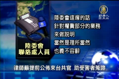 陸委會聯絡處人員:「陸委會這邊的話,針對權責部分的業務來做說明,當然是理所當然,也義不容辭,但是您剛剛所說的部份,可能權責不在陸委會」。