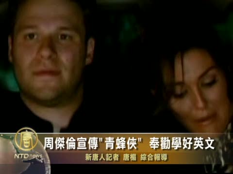 周杰倫宣傳“青蜂俠”奉勸學好英文