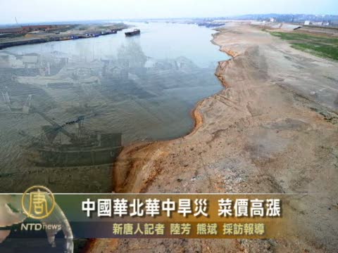 【新唐人2010年12月14日訊】入冬以來,中國山東、河南、江西、河北、江蘇等地降雨偏少,江河和水庫水位繼續下降,部份地區乾旱嚴重,飲水發生困難,大面積農作物受到影響,災區民眾透露,因為蔬菜枯死了好多,導致菜價高漲。