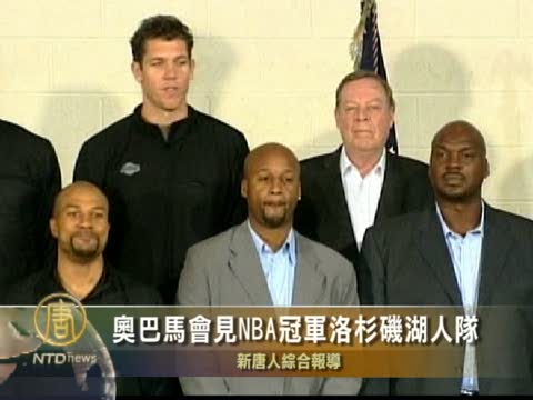 【新唐人2010年12月14日訊】12月13號(星期一),美國總統奧巴馬在華盛頓一家青少年俱樂部會見洛杉磯湖人隊,祝賀他們獲得2010年度美國職業藍球比賽的冠軍。