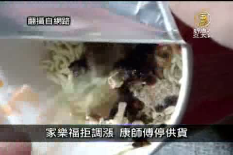 受中國通膨影響,台資食品企業康師傅速食麵從上月起漲一成,但法商連鎖超市家樂福拒漲價,於是康師傅對家樂福停止供貨,斷貨風波涉及家樂福在中國所有門市。雙方談判至今未果。