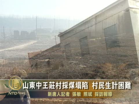 【新唐人2010年12月15日訊】山東省肥城市湖屯鎮中王莊村遭非法開採煤礦,全村土地和房子嚴重塌陷,原村書記出賣全村土地給煤礦老闆,300多村民被迫遷村到一竹林地,生計出現困難。因為補償不合理,釘子戶楊家兩年來仍住在危房裡。
