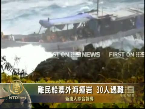 【新唐人2010年12月15日訊】一只前往澳大利亞尋求庇護的難民船,星期三在澳屬聖誕島海岸發生船難,已有41人獲救,約30人可能罹難。