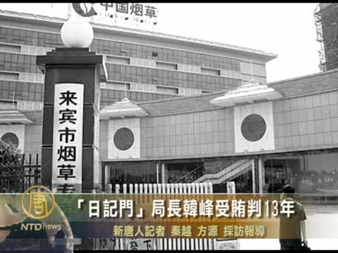 【新唐人2010年12月15日訊】今年年初紅極一時的“日記門”主角,中國廣西來賓市煙草專賣局局長韓峰,近日被南寧市中級法院以受賄百萬判處13年徒刑,沒收個人財產10萬元。大陸傳媒人士直呼,檢方認定貪污數額實在太少,不可信。