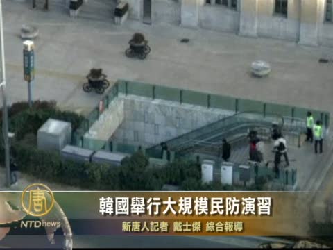 【新唐人2010年12月15日訊】由於朝鮮半島的緊張局勢,韓國政府星期三(十二月十五日)針對平壤可能的攻擊行動,舉行了有史以來最大規模的全民國防演習。