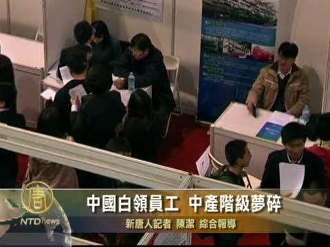 【新唐人2010年12月15日訊】在中國,擁有一張大學文憑曾經被視為改變命運的轉折點,但現在的嚴峻現實是,大學畢業生供過於求,求職難。尋找工作的大學畢業生們正面臨低工資、高生活成本和暗淡的職業前景。 中國白領員工的“中產階級夢” 正與他們漸行漸遠。