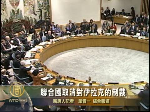 【新唐人2010年12月16日訊】聯合國安理會15日通過了3份決議,取消對伊拉克的一系列制裁和限制措施,這些措施是在1990年薩達姆政權入侵科威特之後實施的。