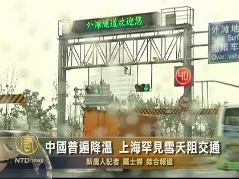 【新唐人2010年12月16日訊】過去兩天來,冷鋒橫掃中國大陸,中國中部、東部和南部常溫地區的氣溫下降至幾乎零度。 上海罕見的出現降雪天氣,造成不少混亂,包括飛機停運,公路被封閉。