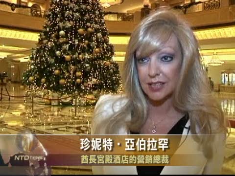 【新唐人2010年12月17日訊】在阿拉伯聯合酋長國首都阿布扎比,一棵世界上最為奢華的聖誕樹,身披價值1100多萬美元金銀珠寶,在酋長國宮殿酒店裡隆重展出。