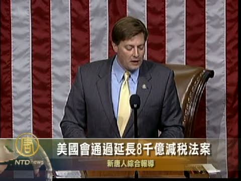 【新唐人2010年12月17日訊】在經過3小時的辯論之後,美國眾議院星期四(12月16日)午夜以277票贊成,148票反對,通過了歐巴馬總統提議的延長減稅及失業救濟金法案,該法案將減少8580億美元的稅收,並增加對失業人員的救助。