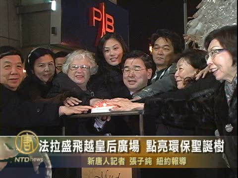 紐約市第一棵環保聖誕樹,在眾人的倒計時聲中,於法拉盛飛越皇后的戶外廣場上點亮,這棵聖誕樹高28尺,由1萬多個回收塑料瓶,12,888個Led(來的)燈泡和電線組成。