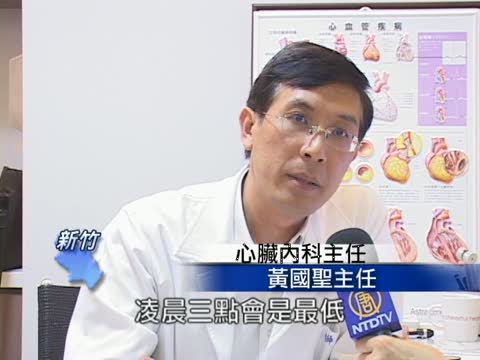 心臟內科醫師黃國聖主任:「事實上我們血壓在凌晨三點會是最低,到早上會是最高,這個現象也是說明說,為甚麼很多中風心臟病,都是在清晨的時候容易發生。」