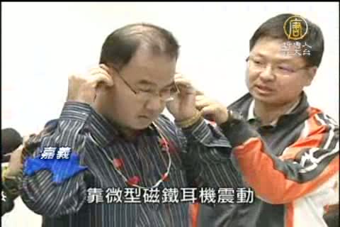 「藉由行動電話接收訊號進來之後,然後把音頻訊號解調出來,再透過頂圈產生電磁場的變化,再把微型耳機置入耳朵之中,藉由音頻變化,靠微型磁鐵耳機震動,就可以聽到從外傳來的答案。」