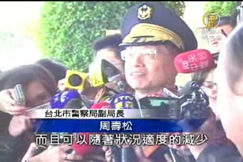 「本日的規劃的勤務是211個人,而且可以隨著狀況適度地減少,絕非外傳的2500名警力,對於這次的勤務,我們警察局本著,保障合法,取締非法,逮捕暴力,一有暴力依法立即逮捕,我相信台北市的市民,有非常高度民主素養的水準,我們希望這次保持平常心,冷靜、理性來看待此次的會議。」