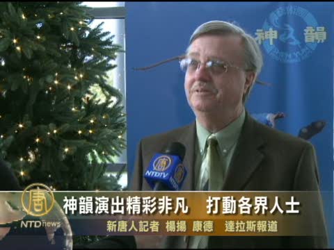 【新唐人2010年12月21日訊】美國神韻紐約藝術團在達拉斯市的最後一場演出在當地時間十二月十九日下午兩點在溫斯比爾歌劇院拉下帷幕。氣勢恢宏、服裝精美絕侖、在加上高科技的動畫天幕背景,神韻二零一一年全新節目帶領觀眾穿越時空,領略純正的中華神傳文化的瑰麗。