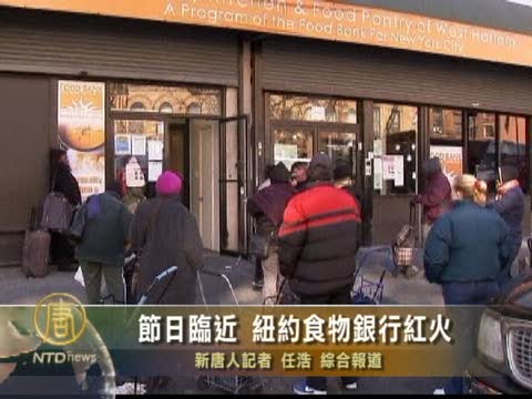 【新唐人2010年12月22日訊】隨著聖誕假期的臨近,紐約的食物銀行敞開大門,為失業的人們提供免費的食品,以保障他們有一個豐盛的聖誕大餐。