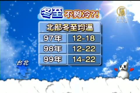 【新唐人亞太台2010年12月22日訊】今天是冬至,不過您有沒有發現,溫度好像比往年冬至來得高?氣象局說,的確比前兩年高了2度左右,其實是因為這波寒流還沒報到,等到耶誕節當天溫度才會明顯下降,跟全球氣候變遷無關!另外,冬至應景吃湯圓,鹹湯圓中的茼蒿,也很應景,漲了2成。