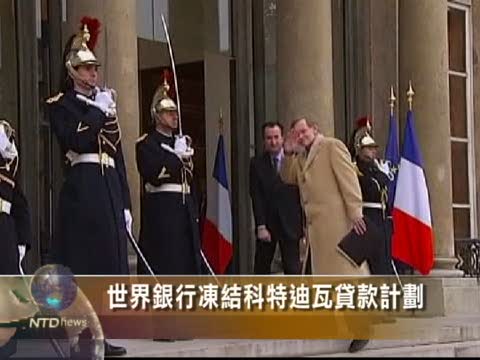 【新唐人2010年12月23日訊】國際社會正在各方施壓讓科特迪瓦現任總統巴博承認敗選下臺,世界銀行行長佐利克12月22日在法國巴黎與法國總統薩爾科奇以及財政部長拉嘉德舉行了會談,他表示,世界銀行已經凍結科特迪瓦的貸款計劃。