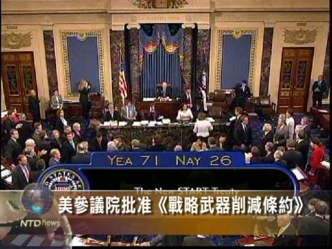 【新唐人2010年12月23日訊】美國參議院週三以71票贊成,26票反對的壓倒性票數批准了美俄《戰略武器削減條約》。
