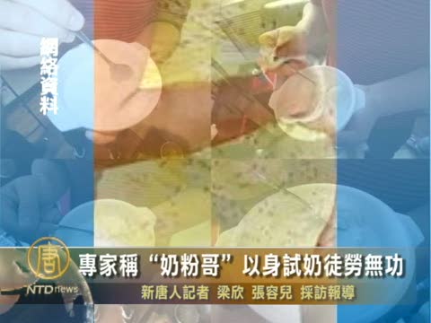 【新唐人2010年12月23日訊】中國的食品安全問題長期以來,令人擔憂,尤其嬰幼兒奶粉更是一再爆出嚴重問題﹔最近一位大陸網友發帖稱,自己為了讓即將出生的孩子免受毒奶粉危害,他以身試奶,已經連續試吃了三個月奶粉,網友感佩之餘,稱他為“奶粉哥”。