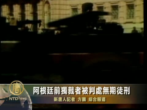 【新唐人2010年12月23日訊】阿根廷前獨裁者豪爾赫•拉斐爾•魏地拉(Jorge Rafael Videla)因在1976-1983年期間犯下的謀殺、酷刑和綁架等罪行,星期三(12月22日)在科爾多瓦(Cordoba)法庭被判處無期徒刑。