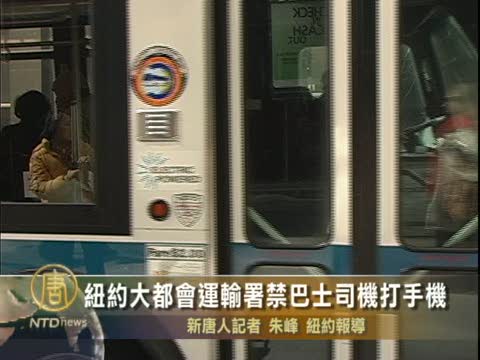 【新唐人2010年12月24日訊】我們來關注一條紐約的消息。紐約市對打擊駕車打手機一向嚴厲,而今後巴士司機如被發現上班時打手機還會面臨被解僱的危險。