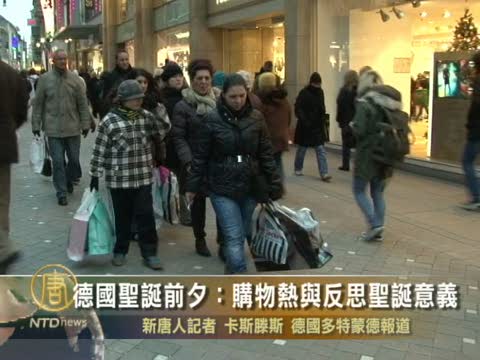 【新唐人2010年12月24日訊】今年聖誕節前德國天氣異常寒冷,很多人都忙著購買聖誕禮物,安排聖誕節期間的活動。那麼聖誕節對每個人意味著甚麼,德國普通民眾是怎麼看這個傳統節日的呢?下面請看來自德國的報導。
