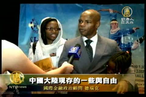 國際金融政治顧問德瑞克先生(Derac):「演出非常精彩,富有感染力。色彩的豐富程度。他讓我對中國的文化有了更深刻的瞭解。另外我認為這場演出非常真實。它不僅展示給人們中國傳統文化的美麗,同時它也客觀的反映了中國大陸現存的一些與自由,正義和平等相關相關的問題。能有機會看到如此的演出,我深感榮幸。」
