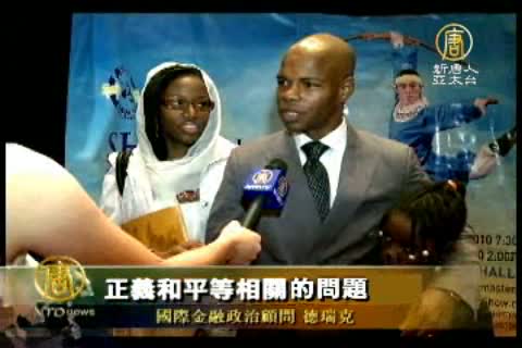 國際金融政治顧問德瑞克先生(Derac):「演出非常精彩,富有感染力。色彩的豐富程度。他讓我對中國的文化有了更深刻的瞭解。另外我認為這場演出非常真實。它不僅展示給人們中國傳統文化的美麗,同時它也客觀的反映了中國大陸現存的一些與自由,正義和平等相關相關的問題。能有機會看到如此的演出,我深感榮幸。」