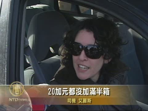 女司機:“讓人不愉快,他們知道我們要離開市區,昨天我沒加油,油價高的嚇人。1.23加元每升,20塊錢我只加了半箱。”