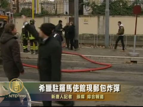 【新唐人2010年12月28日訊】希臘駐羅馬大使館27日發現一個“郵包炸彈”,所幸炸彈被成功拆除,無人受傷。意大利警方表示,這個爆炸裝置類似上週襲擊瑞士和智利使館的郵包炸彈。