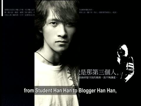 28歲的韓寒今年剛做了父親,這位高中學歷的作家,在高一曾創下期末考試七科不及格的記錄。但他擅長寫作,16歲在大陸全國新概念作文大賽中獲—等獎,18歲出版的長篇小說《三重門》一面世就成為暢銷書。他的新浪博客訪問量列排行榜第六名,截止到2010年12月27號是441,510,715 ,並且在不斷的增長。