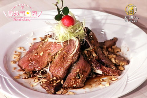 廚娘認為烹飪其實不只是料理美食,擺盤的設計效果也可以製造視覺和味覺雙重享受。例如這次王俊清師傅教我們烤牛小排,牛肉本身只要新鮮,並不需要醬料醃漬,淋在牛肉上的佐料就顯得格外重要。這道菜,王師傅以高麗菜絲襯底,再將牛肉切片擺在上面,無論高麗菜堆砌出的形狀、牛肉擺放的方式、點綴在牛肉上的醬汁、碎花生和蔥絲,廚師的匠心獨具都值得一學…