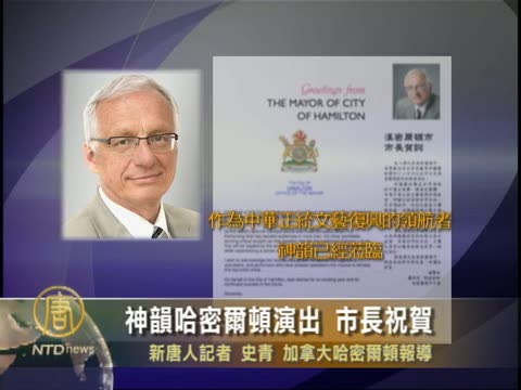 【新唐人2010年12月30日訊】美國神韻巡迴藝術團圓滿結束了渥太華的演出後,來到了加拿大的第二站,哈密爾頓市。這是神韻第二次來到這裡,哈密爾頓、伯靈頓市市長分別發來賀信,感謝神韻帶來正統中華文化的盛宴。
