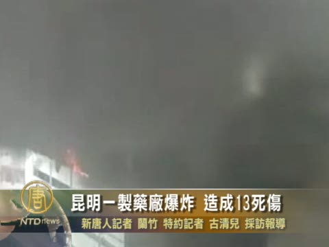 【新唐人2010年12月31日訊】星期四上午,中國雲南昆明市一間製藥廠發生爆炸並引起火災,事故共造成5人死亡,8人受傷,傷者其中5人是重度燒傷﹔藥廠座落於昆明市一個住宅區中心,並與一所中學相鄰,所幸,火災並沒有危及居民及學校師生安全。