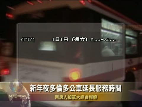 【新唐人2010年12月31日訊】2011新年將近,多倫多公車局(TTC)、約克區公車局、密西沙加公車局和GO火車將提供新年夜免費服務: