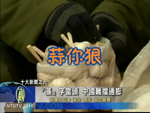 【新唐人2010年12月31日訊】中國百姓對2010年的整體印象是甚麼呢?毫無疑問,「漲」,在互聯網上高票當選為年度漢字。從雞蛋、蔬菜、大米再到石油全都漲翻天。現在北京、上海的白領族流行種菜自給自足﹔深圳人流行南下到香港搶貨。在未來一年裡,通貨膨脹這個燙手山芋恐怕還是揮之不去。