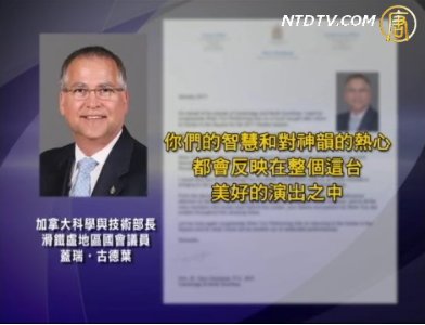 【新唐人2011年1月2日訊】新年的第一天,美國神韻巡迴藝術團登臨加拿大雙子城基奇納-滑鐵盧,在這裡奉獻4場全善、全美的藝術演出。為了歡迎神韻再次來到這座新興的高科技城市,當地的國會議員們紛紛發來賀信。