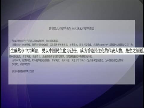【新唐人2011年1月4日訊】被大家親切地稱為“華叔”的香港民主鬥士司徒華,日前在香港病逝。多倫多的民運團體紛紛表示哀悼,並表示要繼承華叔為中國爭取民主的遺志。